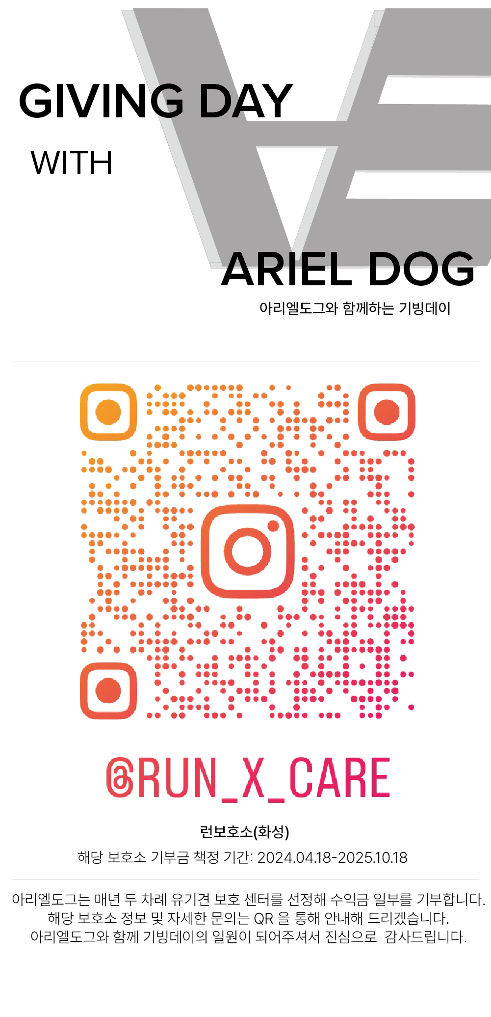 아리엘도그와 함께하는 GIVING DAY 2025 페이지 정보 작성자 관리자 조회396회 작성일 25-04-25 10:50 본문 인스타그램: https://www.instagram.com/run_x_care?igsh=MWE2NGJxdmRsNGlsYw== *** 책정기간 한달연장 ~11/30 목록 댓글목록 댓글목록 등록된 댓글이 없습니다.